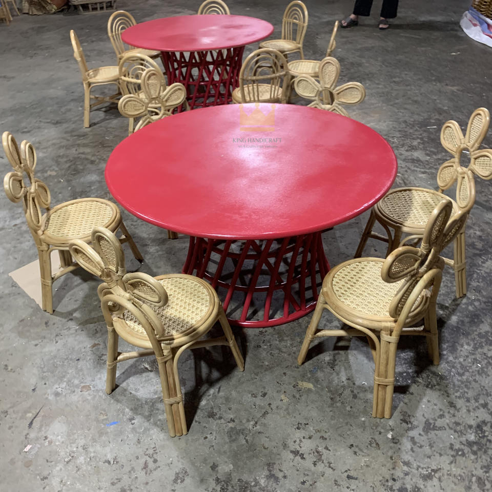 ชุดโต๊ะและเก้าอี้สำหรับเด็กสีแดงที่ทันสมัยสำหรับกิจกรรมกลางแจ้งและสวนสาธารณะวัสดุที่เป็นมิตรกับสิ่งแวดล้อม
