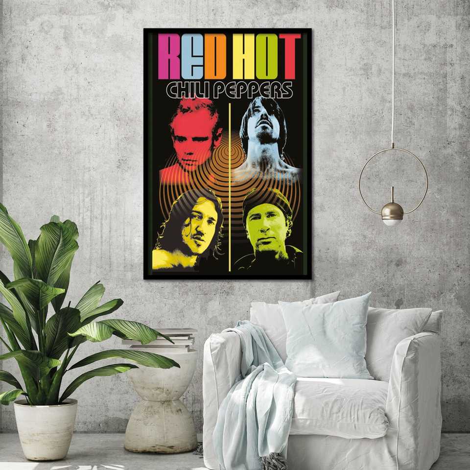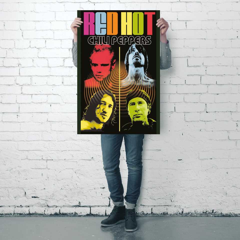 โปสเตอร์โมเดิร์นเรดฮอทชิลลี่พีเพอร์ส คัลเลอร์มี ดีไซน์สำหรับตกแต่งผนัง