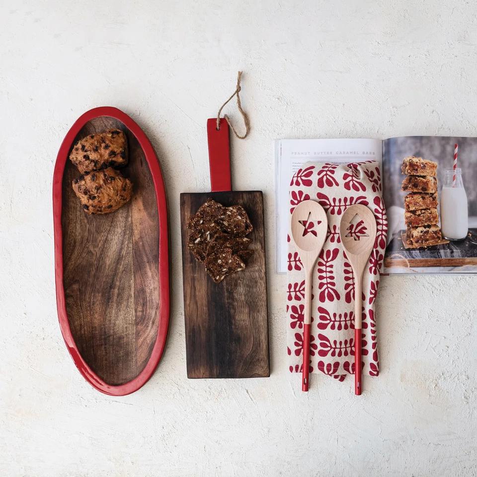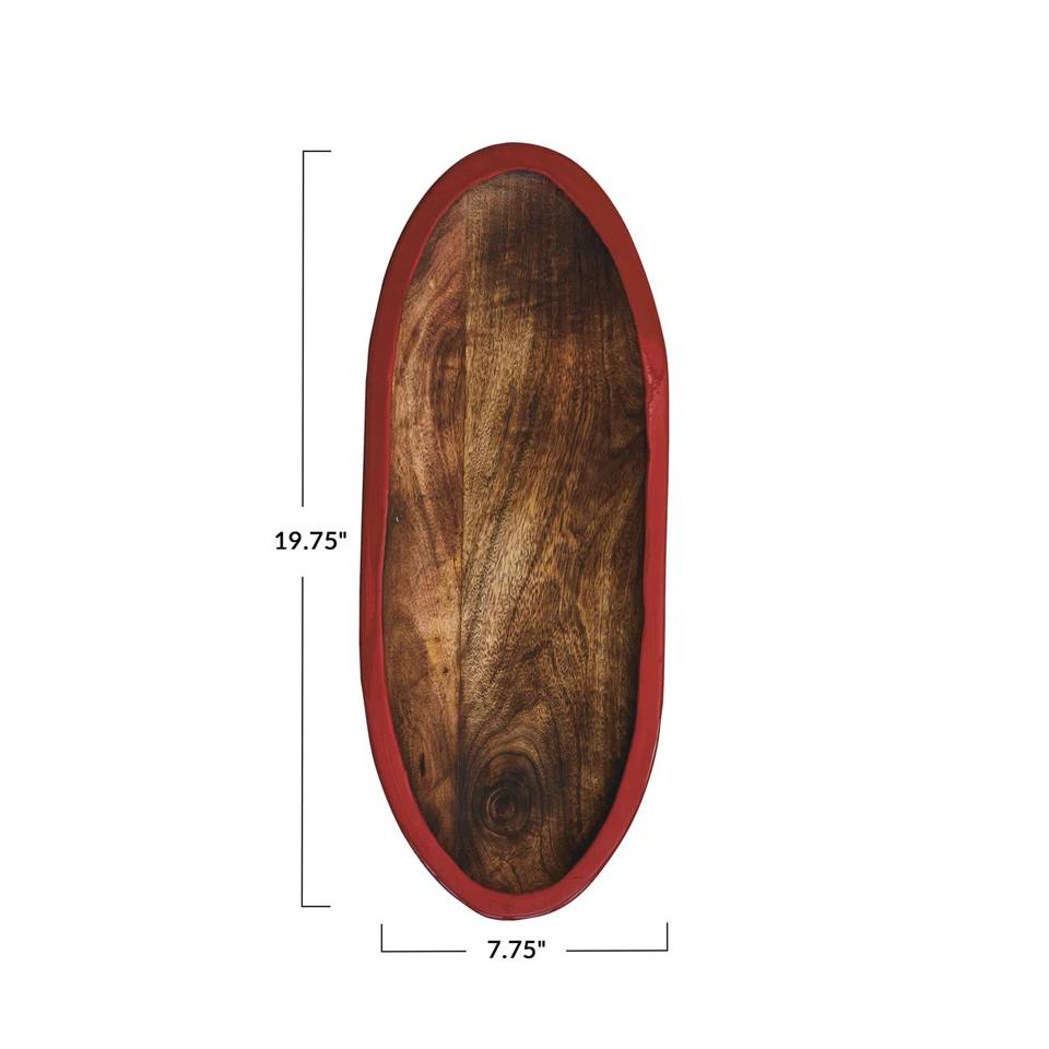 ถาดและจานตกแต่งทรงรีไม้มะม่วงสีแดง/วอลนัททันสมัย