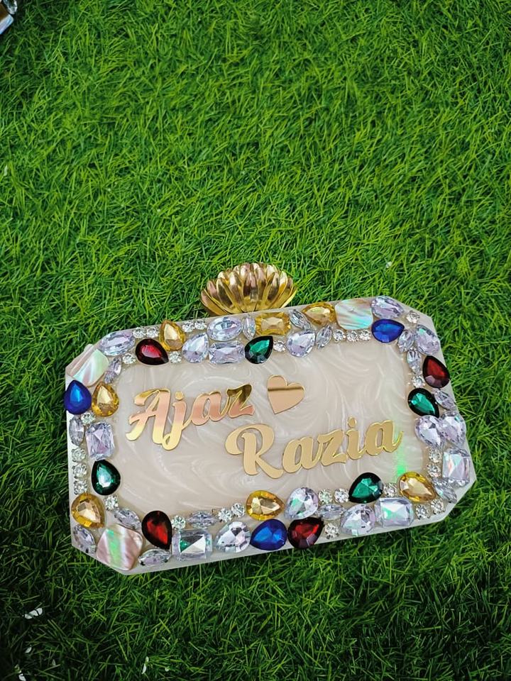 กระเป๋าคลัทช์ทรงสี่เหลี่ยมผืนผ้าเรซิ่นทันสมัยลายเพชร แฟชั่นสำหรับงานแต่งงานและของขวัญงานปาร์ตี้ Humayun World Crafts
