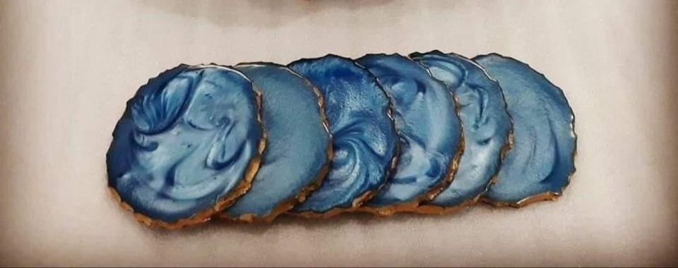 แผ่นรองแก้วเรซิ่นหินสมัยใหม่สำหรับภาชนะบนโต๊ะอาหารและของตกแต่ง ขัดเงาด้วยมือ สำหรับบรรจุภัณฑ์และจำหน่ายตามสั่ง โดย G:E