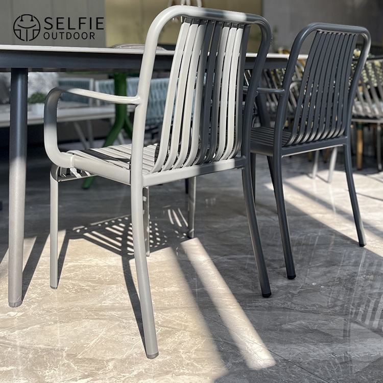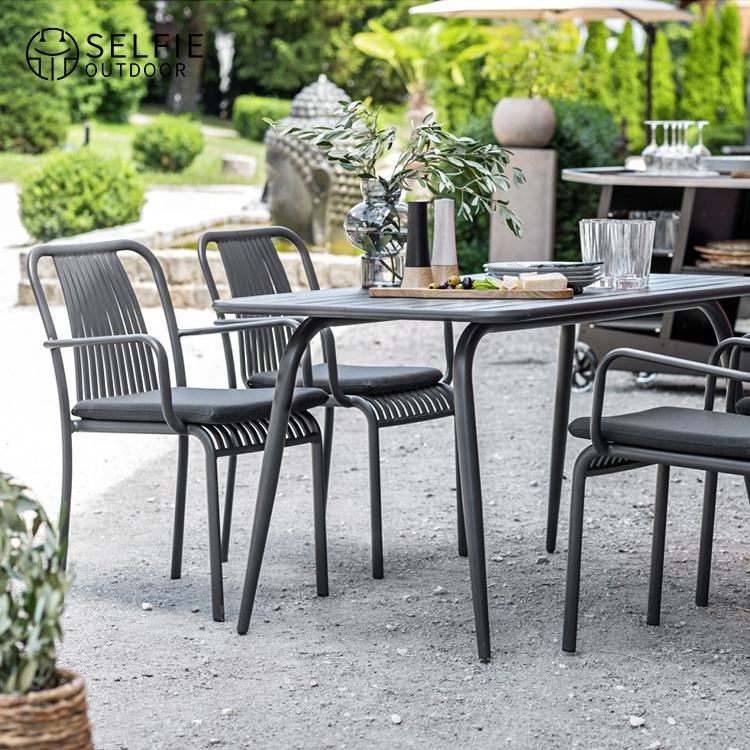 ชุดรับประทานอาหารอลูมิเนียม6ที่นั่งเฟอร์นิเจอร์ร้านอาหารทันสมัยโต๊ะรับประทานอาหารและเก้าอี้6ที่นั่ง
