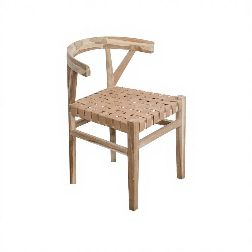 ชุดโต๊ะและเก้าอี้รับประทานอาหารกลางแจ้งสำหรับร้านอาหารสมัยใหม่ พร้อมเบาะหนังหุ้ม โครงสร้างไม้สักแท้ สำหรับใช้งานเชิงพาณิชย์