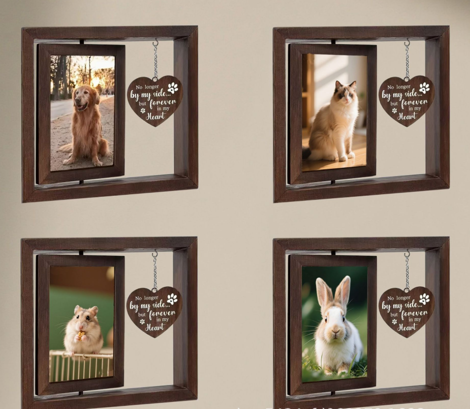 กรอบรูปไม้สำหรับสัตว์เลี้ยงแบบทันสมัย ใช้ซ้ำได้ เป็นมิตรกับสิ่งแวดล้อม น้ำหนักเบา พร้อมจี้รูปหัวใจสำหรับแขวน