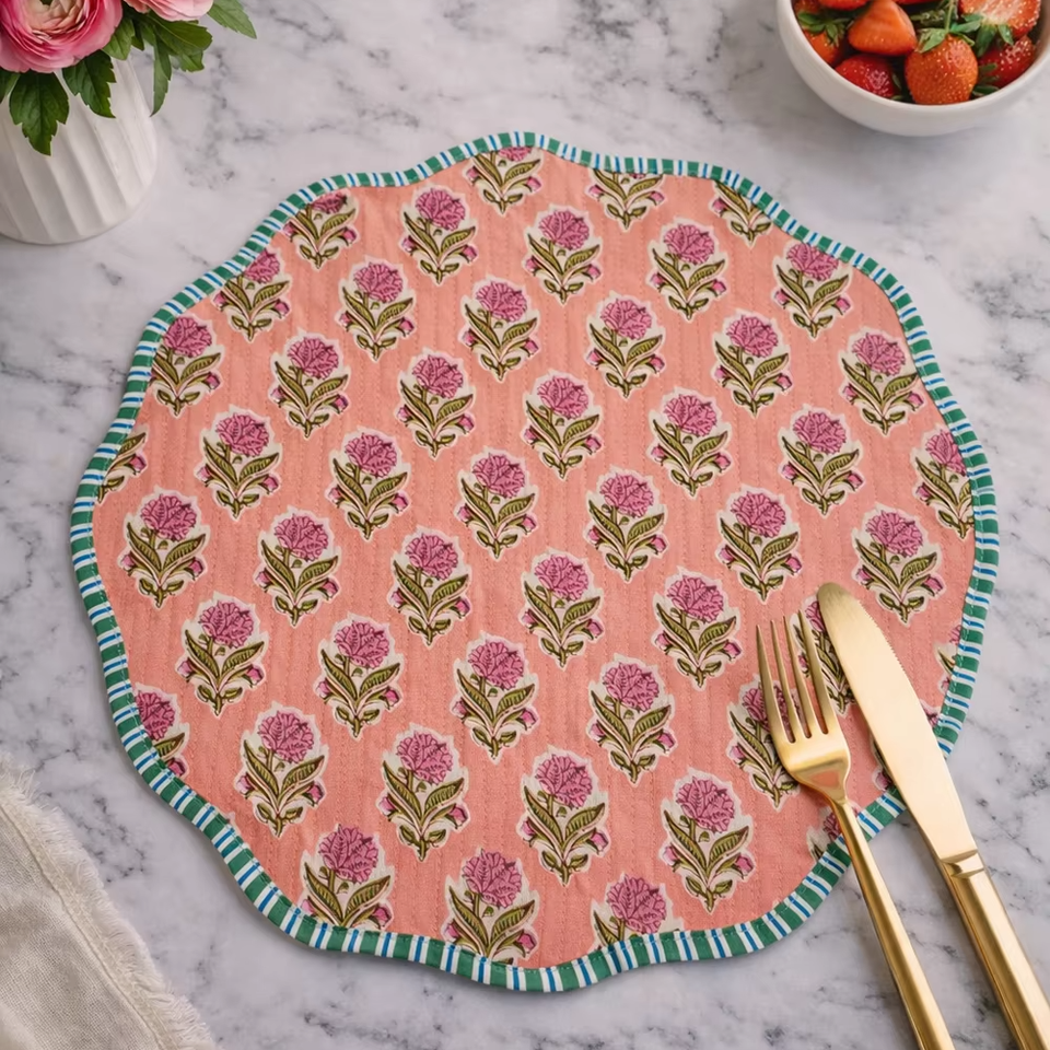 แผ่นรองจาน/แผ่นรองโต๊ะอาหารแบบเรียบง่าย ลายดอกไม้พิมพ์ลายผ้าฝ้ายแบบกลับด้านได้ ทันสมัย ซักเครื่องได้ รูปทรงหลากหลาย ปรับแต่งได้ สไตล์ราชสถาน