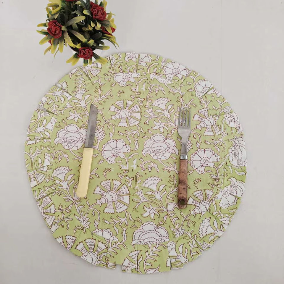 แผ่นรองจานลายดอกไม้แบบใส่ได้เองพิมพ์ลายบล็อกด้วยมือแบบใช้แล้วทิ้งใช้ซ้ำได้ผ้าคอตตอน100% สำหรับงานเลี้ยงบ้านห้องครัวงานแต่งงานรับประทานอาหาร