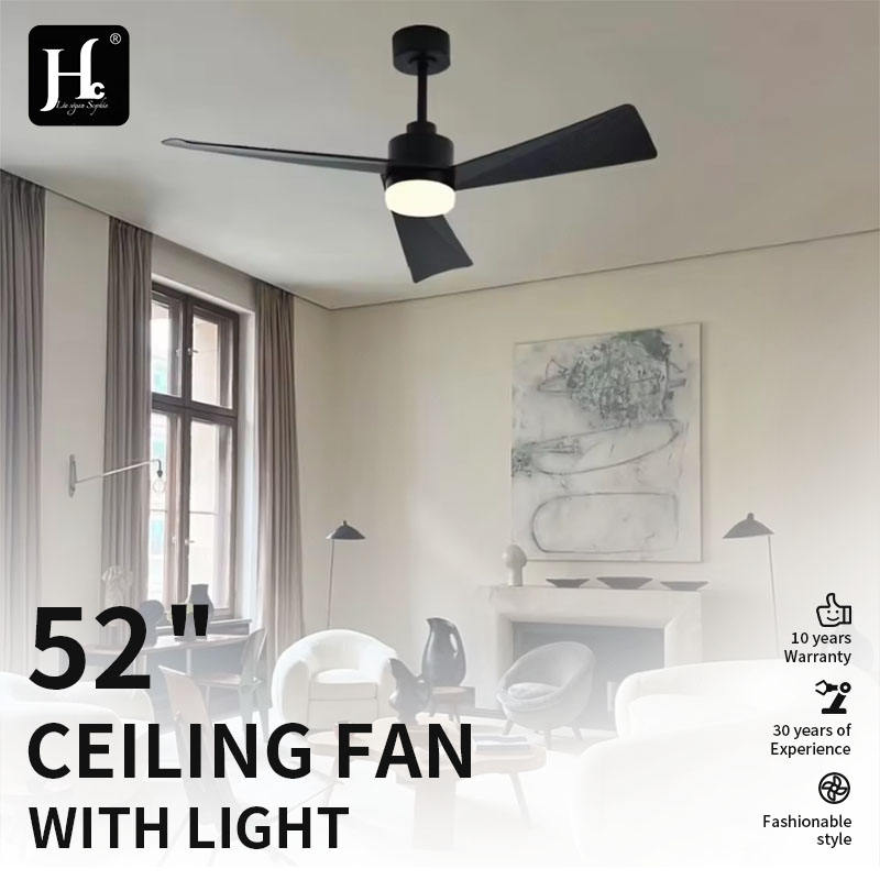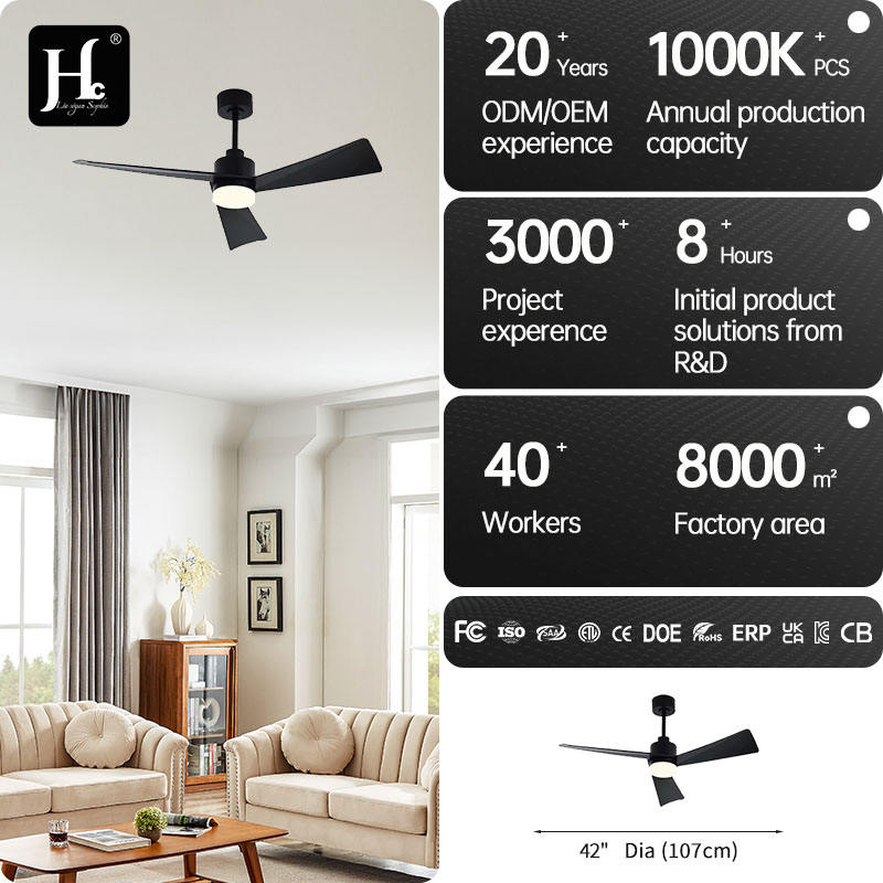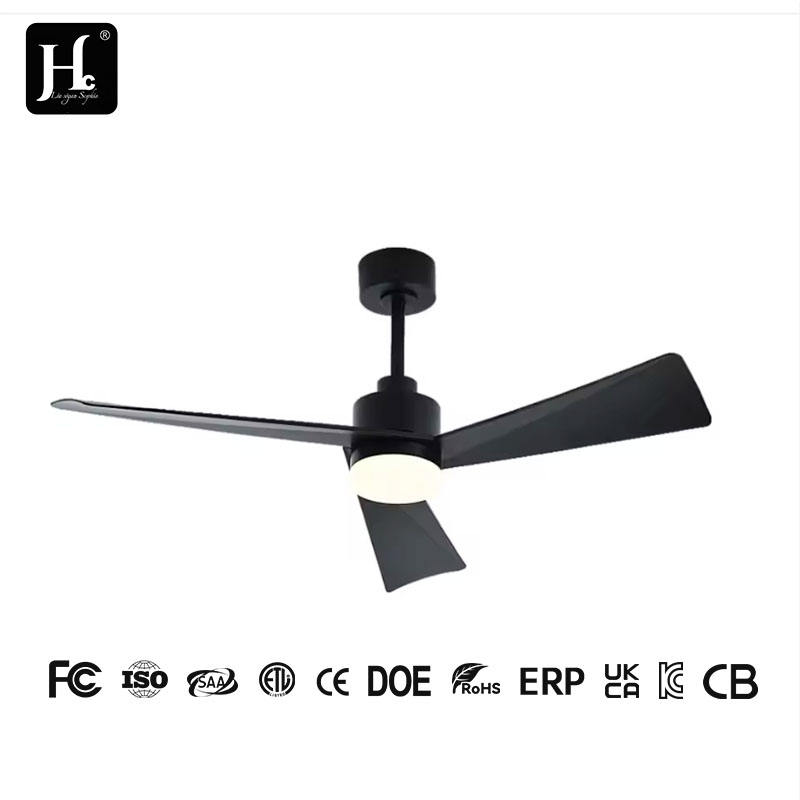 พัดลมเพดานใบพัดไม้ LED แบบพลิกกลับได้ รุ่นโมเดิร์น พร้อมมอเตอร์ DC 6 ระดับความเร็ว 3 สี และตัวโคมไฟ ABS สำหรับบ้าน/สำนักงาน ดีไซน์บางเฉียบ
