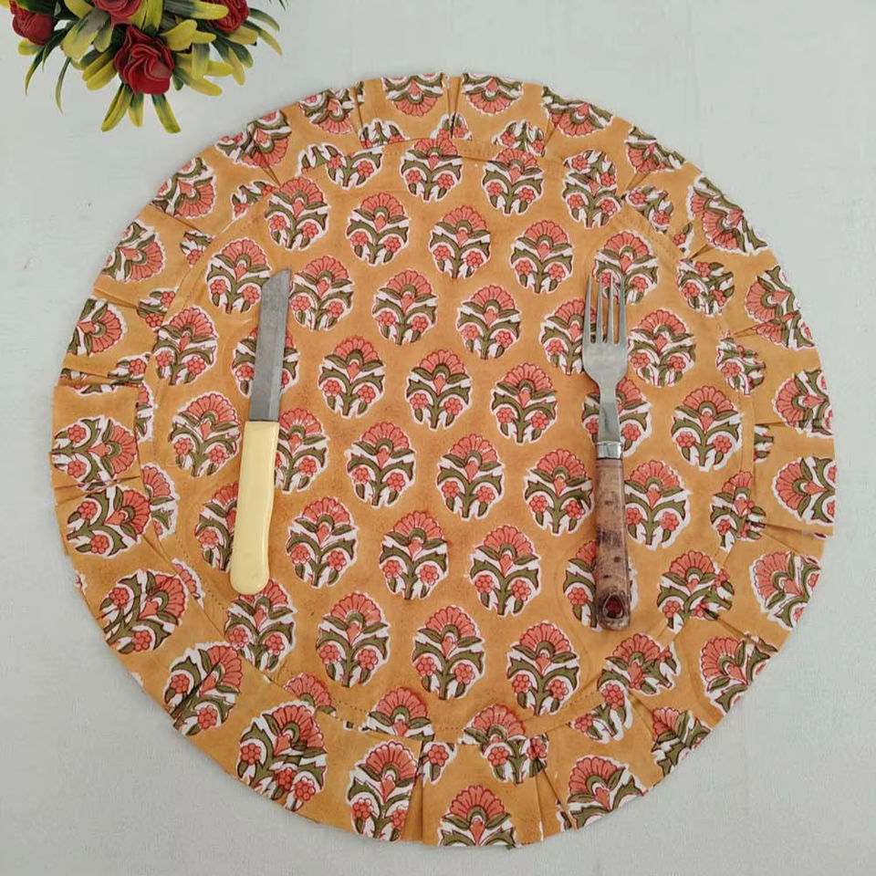 แผ่นรองจานลายดอกไม้สีส้มแบบพลิกกลับได้ทันสมัยใช้ซ้ำได้ตกแต่งโต๊ะรับประทานอาหารแบบใช้แล้วทิ้งสำหรับงานแต่งงาน