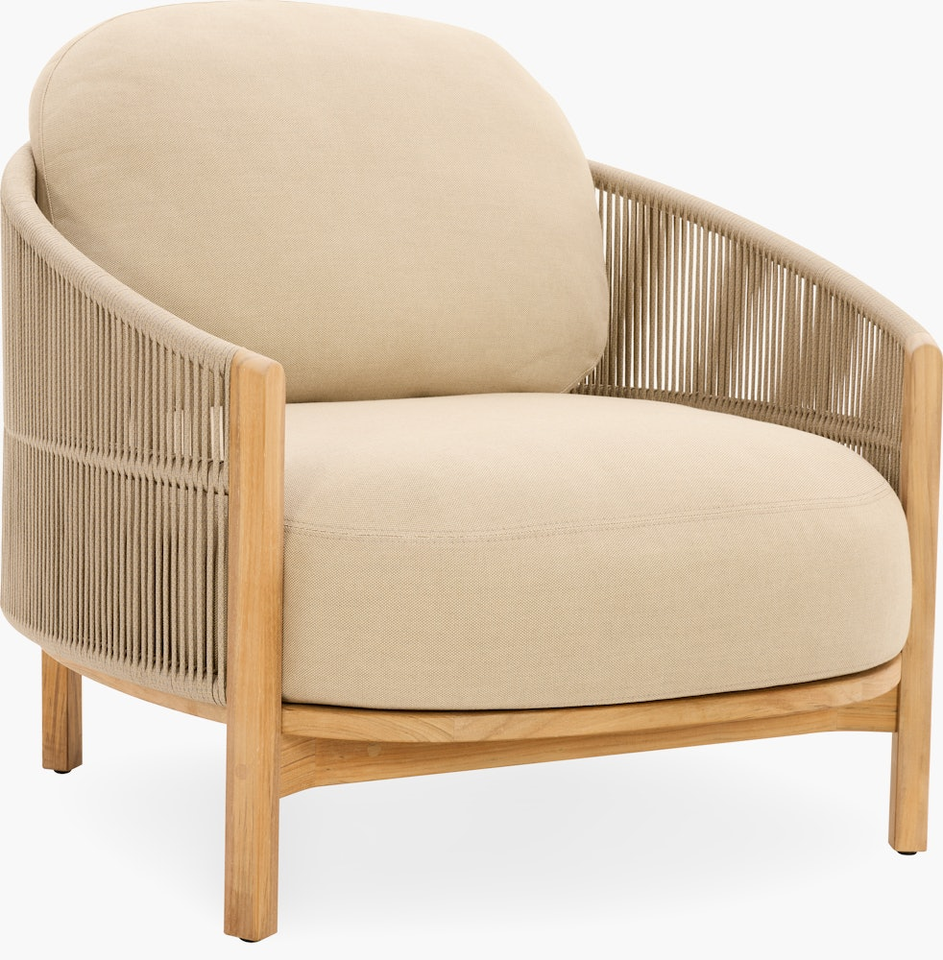 เก้าอี้เท้าแขนกลางแจ้งเชือกและไม้ที่ทันสมัย