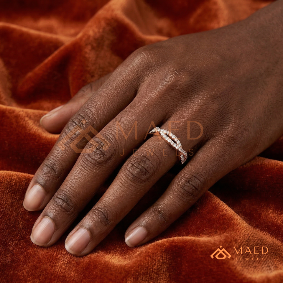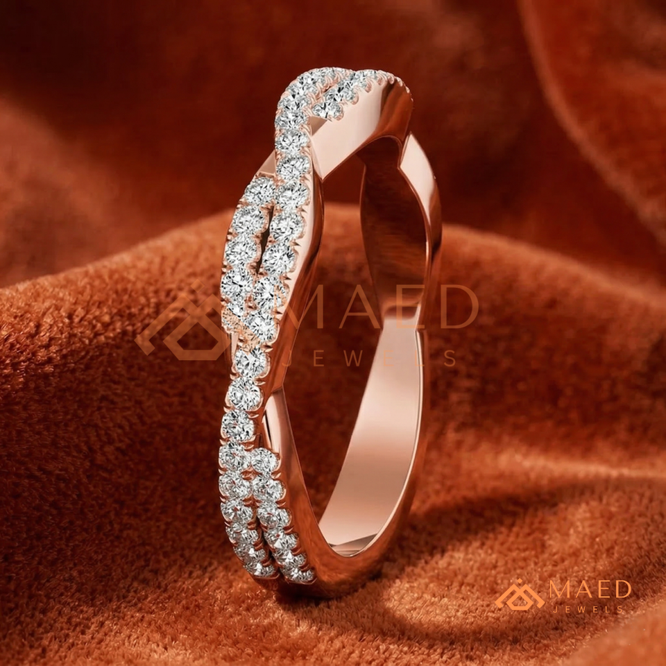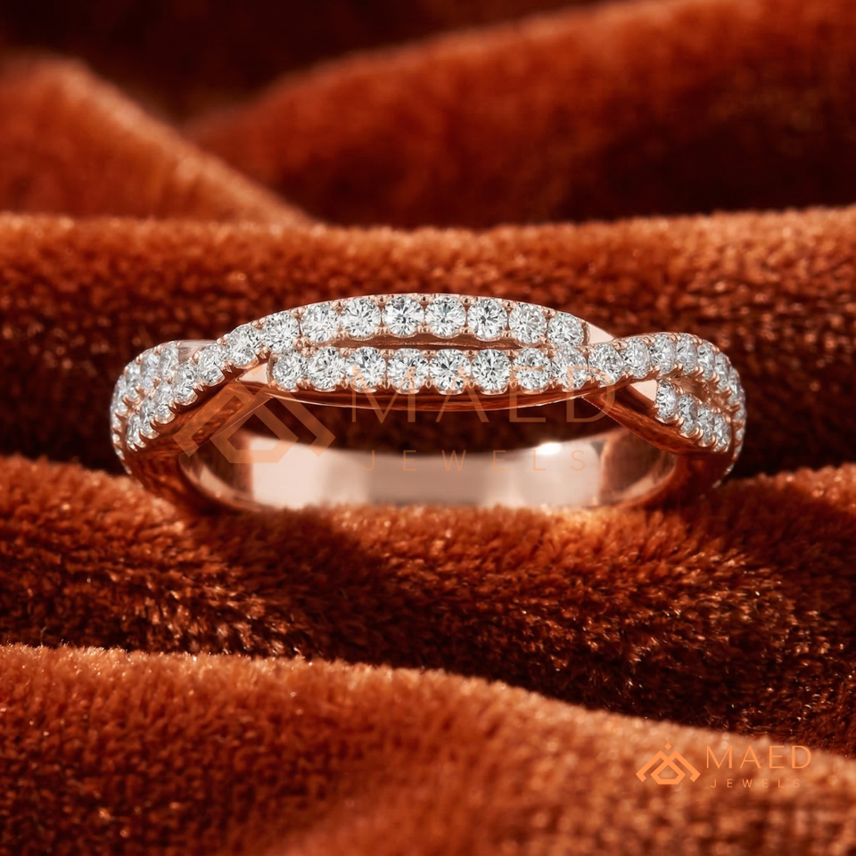 แหวนเพชรแบบถักสองแถวสีโรสโกลด์ทันสมัย | แหวนเพชรแล็บประกายระยิบระยับรูปอินฟินิตี้ | ของขวัญวันครบรอบประดับมอสซาไนต์