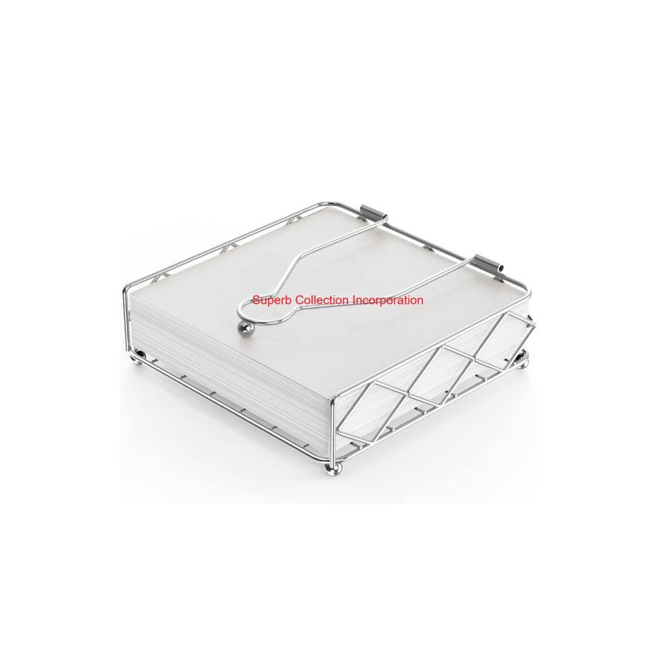 ที่ใส่กระดาษเช็ดปากลวดโลหะสีโรสโกลด์ทันสมัยพร้อมโต๊ะรับประทานอาหารเครื่องจ่ายทิชชู่สแตนเลสทรงเรขาคณิตที่หรูหราสำหรับใช้ในโรงแรม
