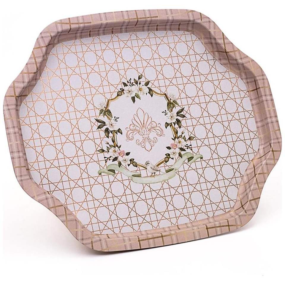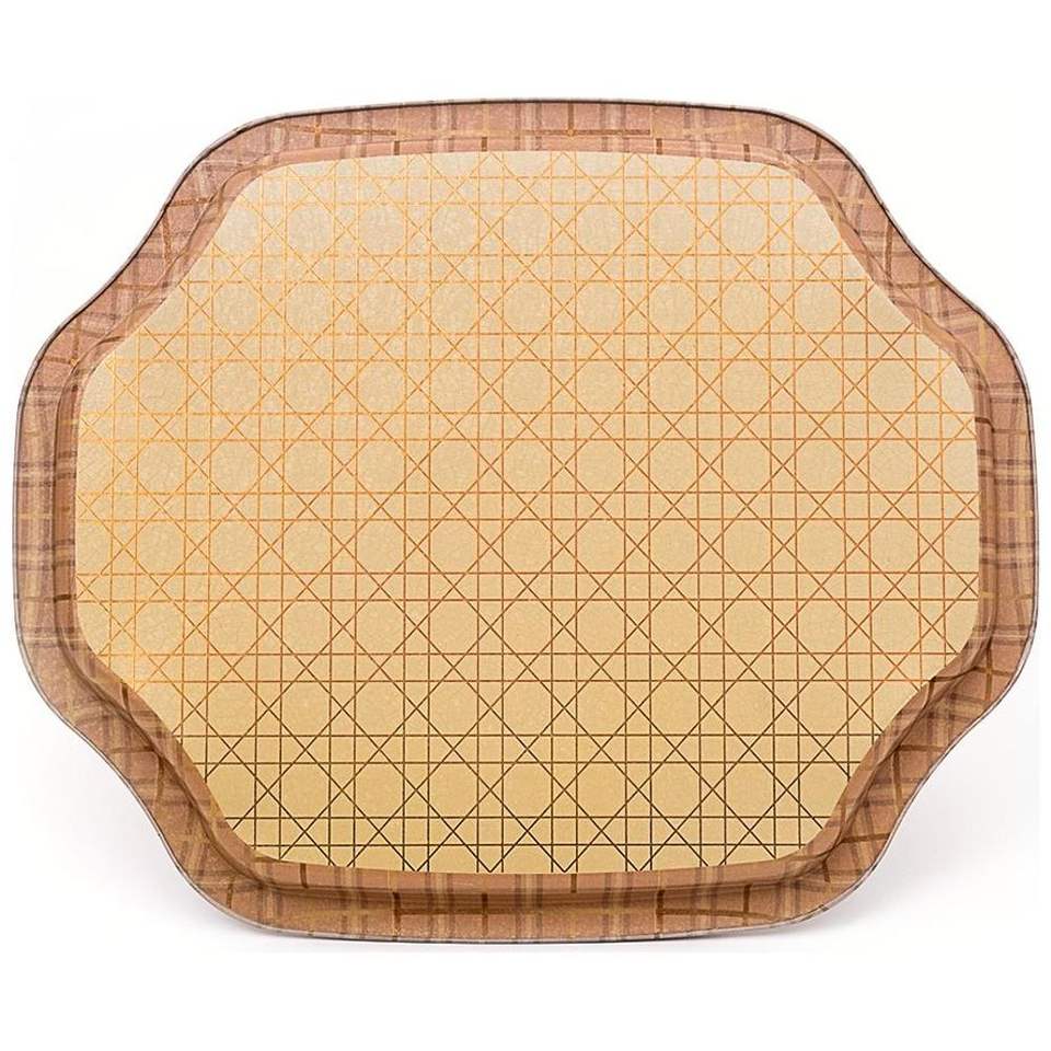 ถาดรองเสิร์ฟทำจากไม้ตกแต่งขนาด278X332มม. ถาดรองใส่กาแฟหวายเป็นสีดอกกุหลาบทันสมัยพร้อมคุณสมบัติโลหะ