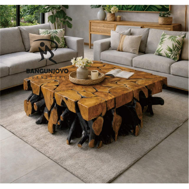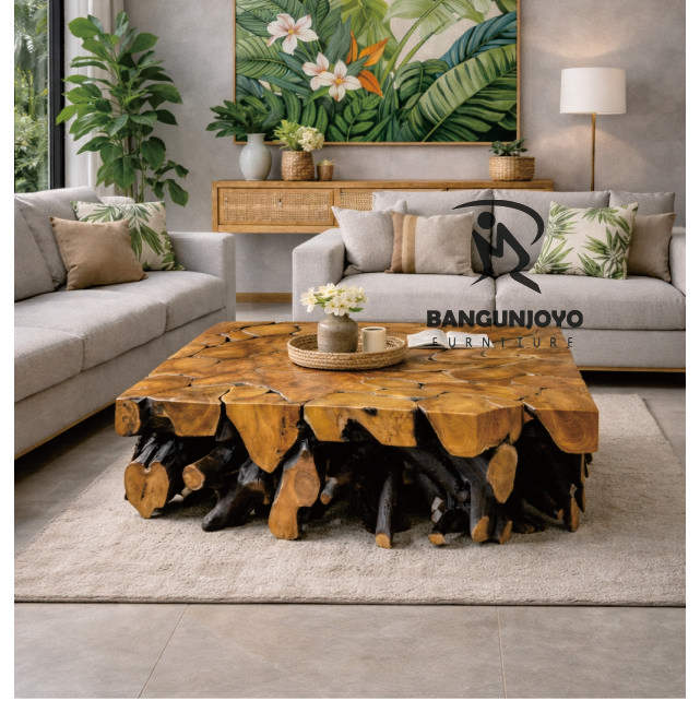โต๊ะกาแฟแบบหมุนได้ทันสมัย ผลิตจากรากไม้สัก เพื่อเสริมสร้างบรรยากาศห้องนั่งเล่น
