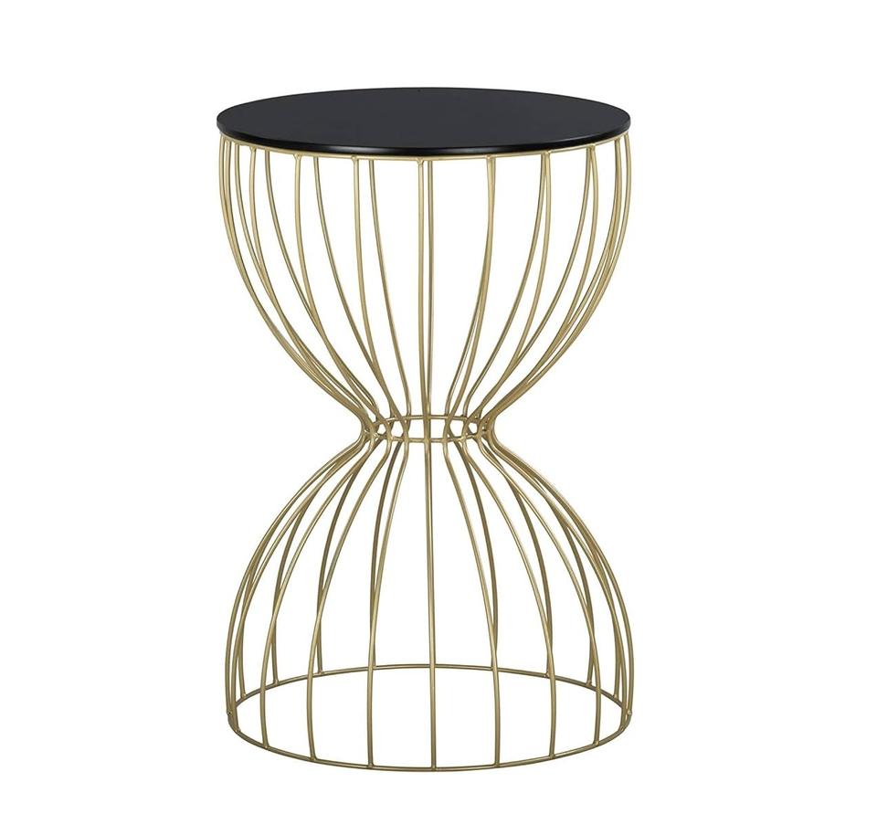 โต๊ะข้างขอบทองเหลืองทรงกลมที่ทันสมัยพร้อมขาสีดำเงาสำหรับห้องนั่งเล่นที่ทันสมัยและการตกแต่งบ้านร่วมสมัยให้สัมผัส