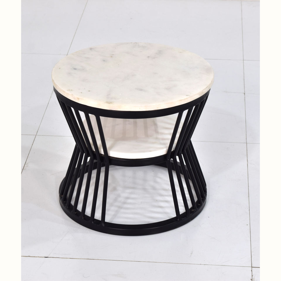โต๊ะกาแฟทรงกลมที่ทันสมัยพร้อมหินอ่อนหินสีขาวด้านบนเป็นท่อเหล็กสีดำสำหรับรับประทานอาหารบ้านโรงแรมร้านอาหารห้องครัวห้องนั่งเล่น