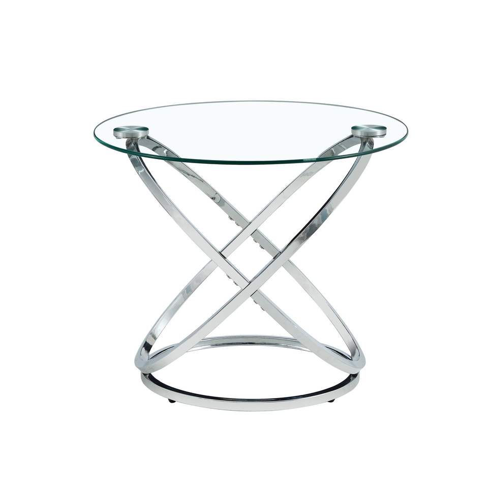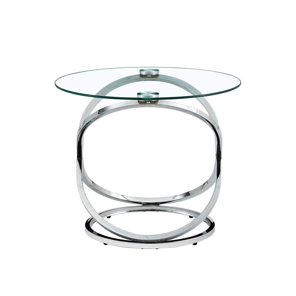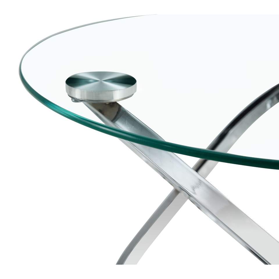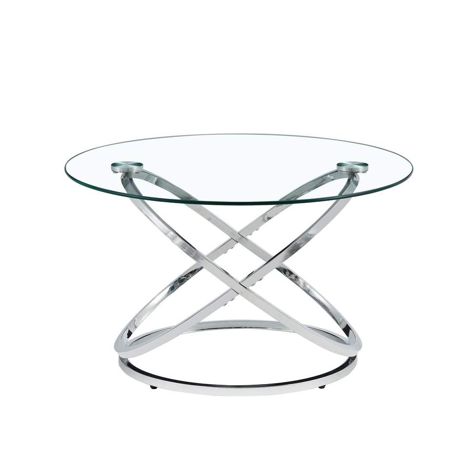 โต๊ะกาแฟทรงกลมทันสมัยพร้อมท็อปกระจกนิรภัยเคลือบโครเมียมสำหรับห้องนั่งเล่น โต๊ะกาแฟสีเงิน