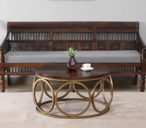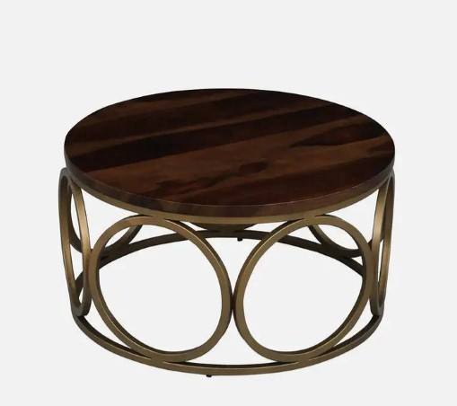 โต๊ะกาแฟเหล็กทรงกลมทันสมัยพร้อมเฟอร์นิเจอร์ห้องอาหารหรูหราทำจากไม้ชีแฮมพร้อมโครงสร้างโลหะเคลือบผงสำหรับใช้ในบ้าน