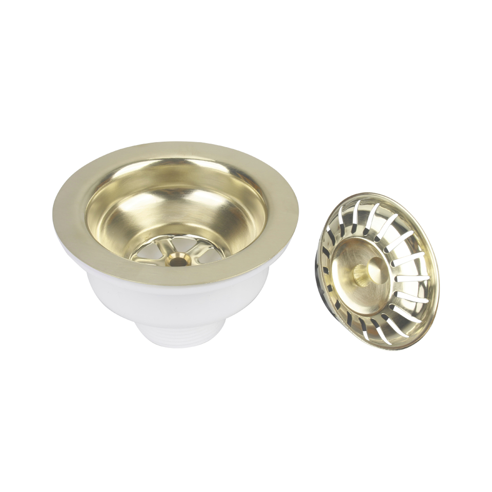ท่อระบายน้ำแบบกลมทันสมัยสำหรับอ่างล้างจานในครัว สีทองขัดเงา ทำจากทองเหลือง สำหรับห้องน้ำหรือโรงแรม วัสดุทองเหลือง