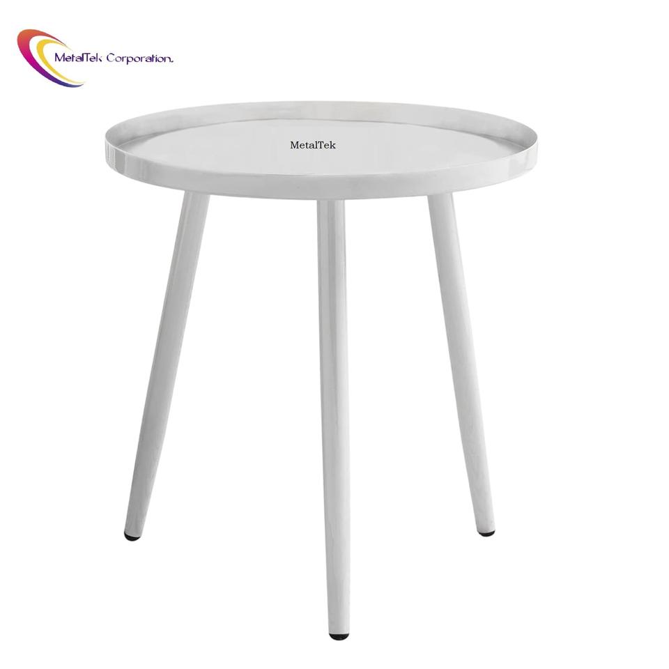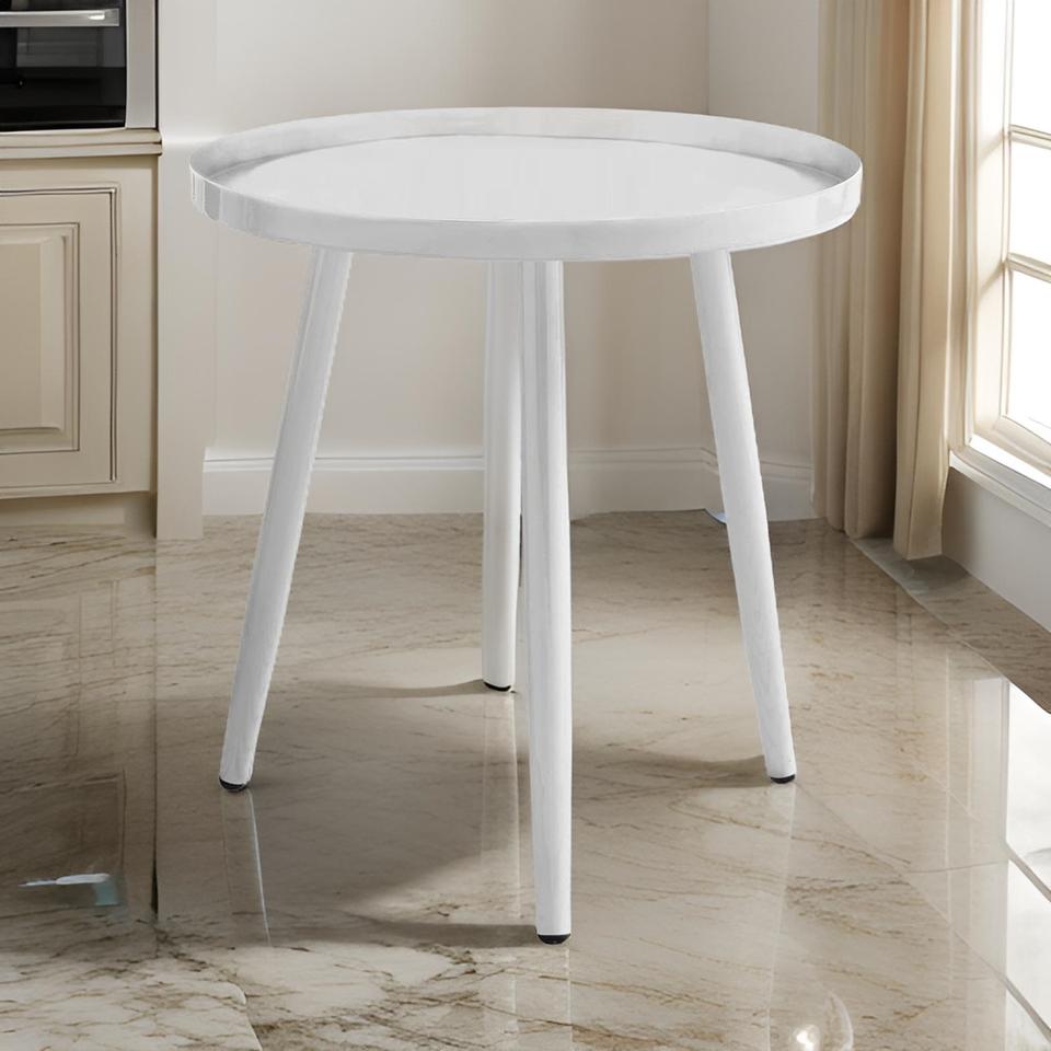 โต๊ะกาแฟโลหะทรงกลมทันสมัย โต๊ะข้างสีขาวสไตล์นอร์ดิกสำหรับห้องนั่งเล่น โต๊ะน้ำชาขนาดเล็กหรูหรา โต๊ะข้างตกแต่งสไตล์มินิมอล