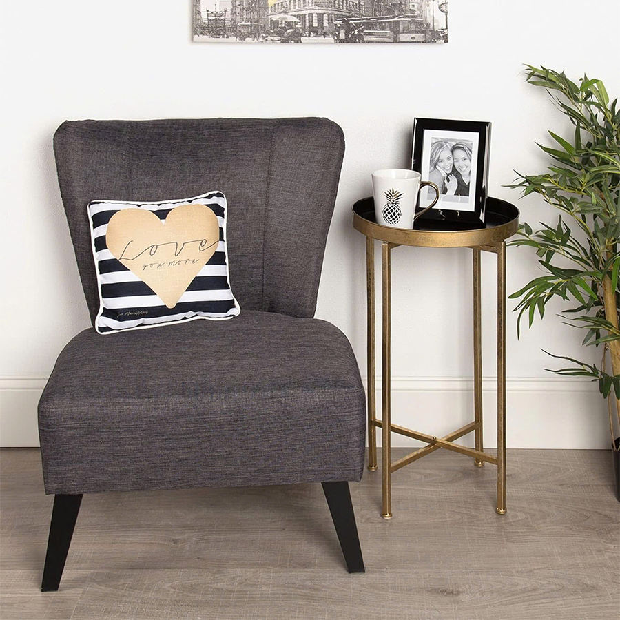 โต๊ะถาดโลหะพับได้ทรงกลมทันสมัยสีดำด้านบนฐานทอง