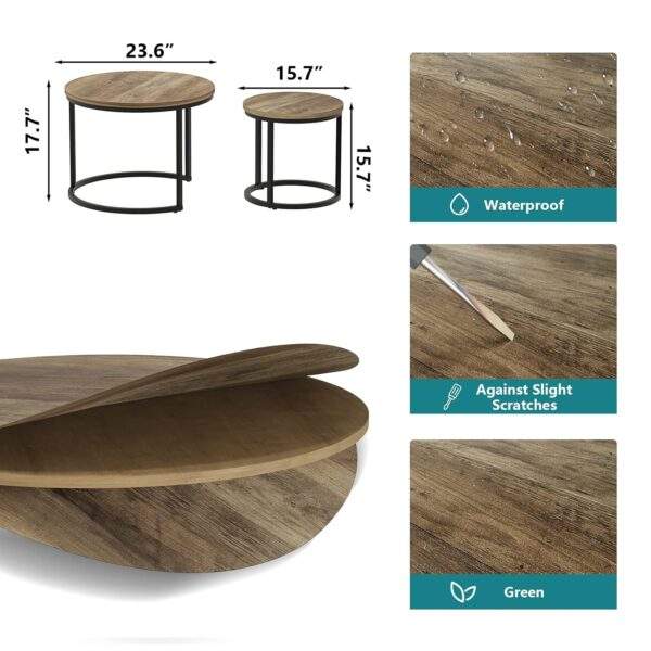 โต๊ะข้างทรงกลมทันสมัย ชุด 2 ตัว พร้อมท็อปไม้และโครงโลหะสีดำ