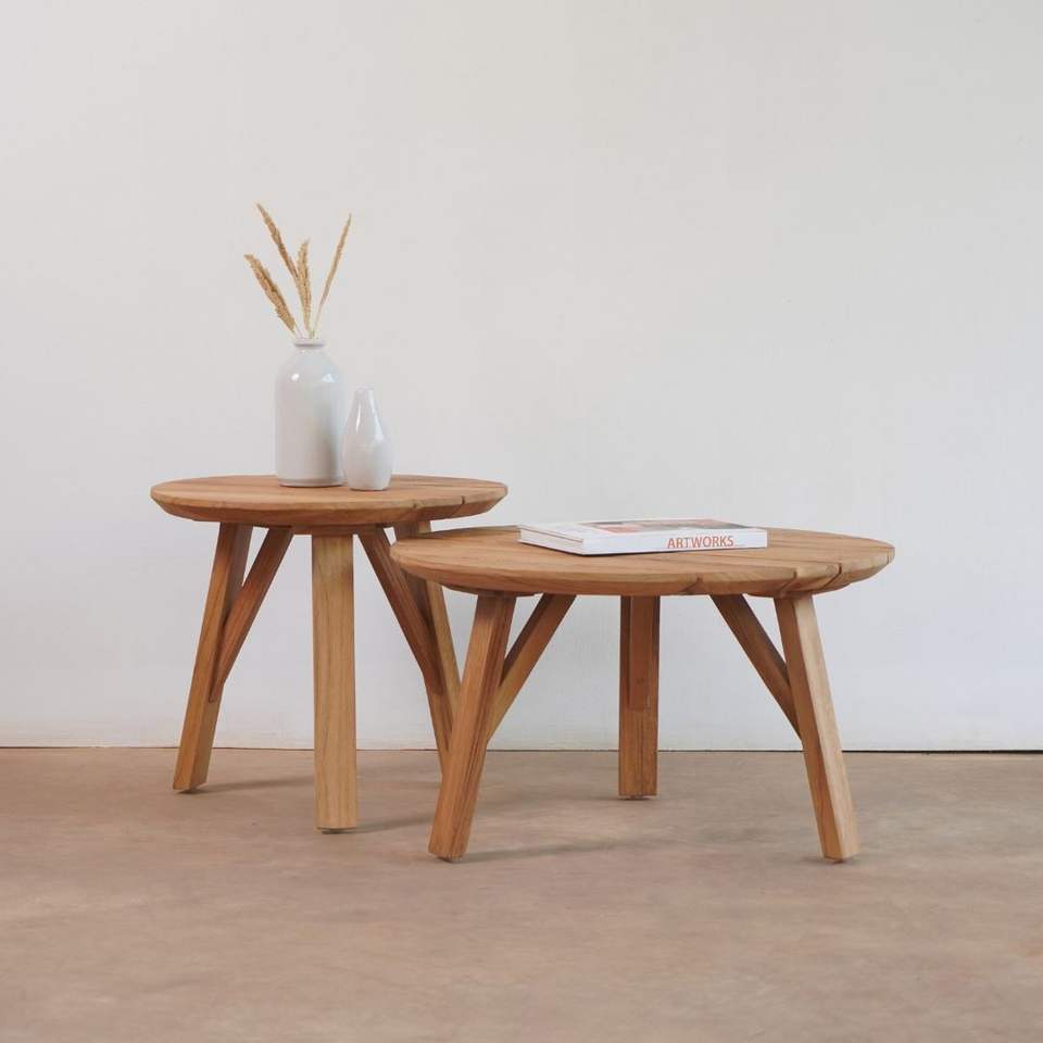 โต๊ะข้างเตียงกลางแจ้งทรงกลมทันสมัยไม้สักเนื้อแข็งสำหรับสวนชายหาดสวนโรงแรมด้านนอก