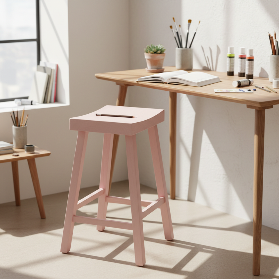เก้าอี้บาร์ทรงกลมไม้ยางพาราแบบทันสมัย - ทนทานและน้ำหนักเบา