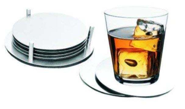 จานรองแก้วโลหะทรงกลมทันสมัยทำจากสเตนเลสสตีลพร้อมอุปกรณ์ตกแต่งทันสมัยเหมาะสำหรับตกแต่งบ้านและป้องกันเครื่องดื่ม
