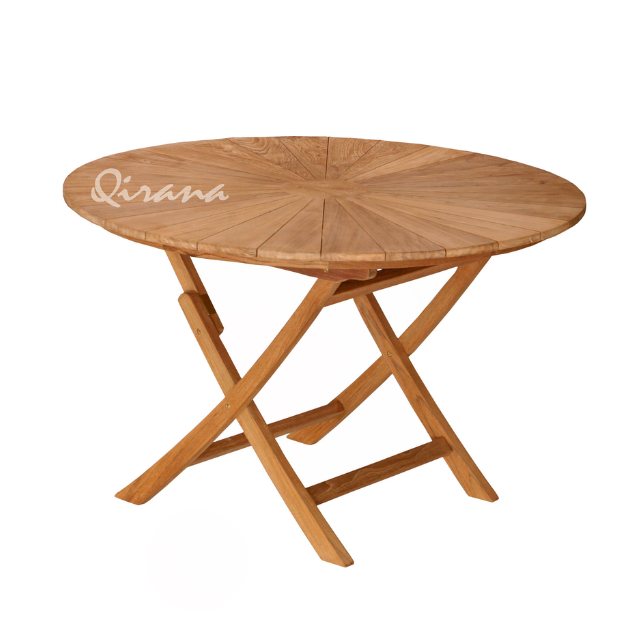 โต๊ะรับประทานอาหารกลางแจ้งทรงกลมทันสมัย รุ่นมาตาฮารี ทำจากไม้สัก น้ำหนักเบา ขนาด 120 ซม. แข็งแรง ทนทาน พร้อมอุปกรณ์ทองเหลือง สำหรับใช้ในโรงแรม