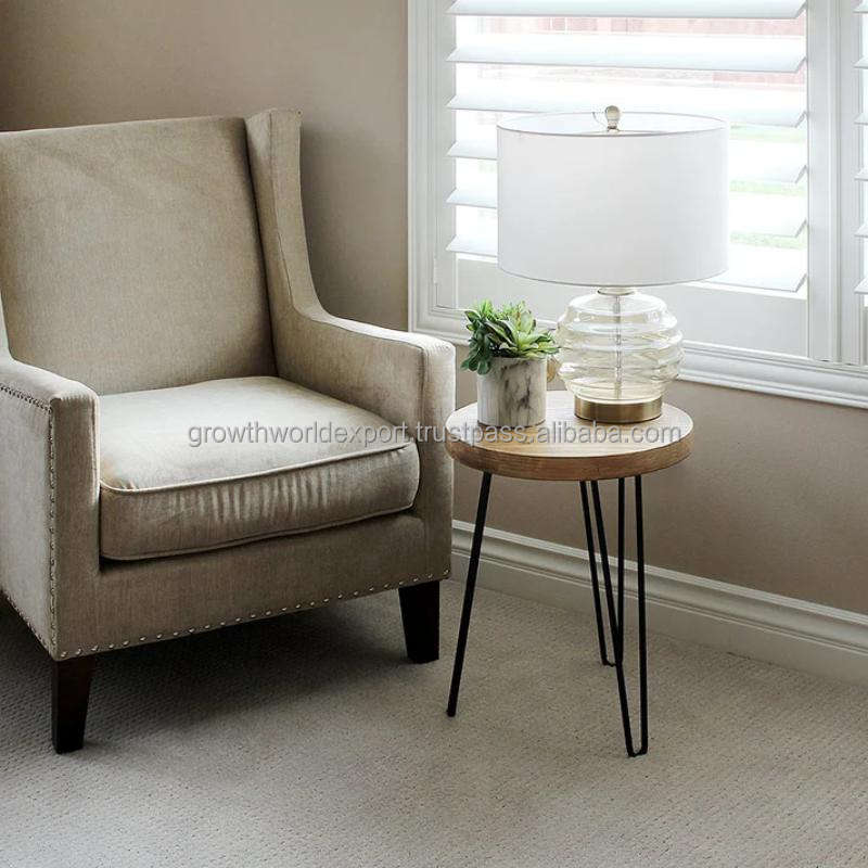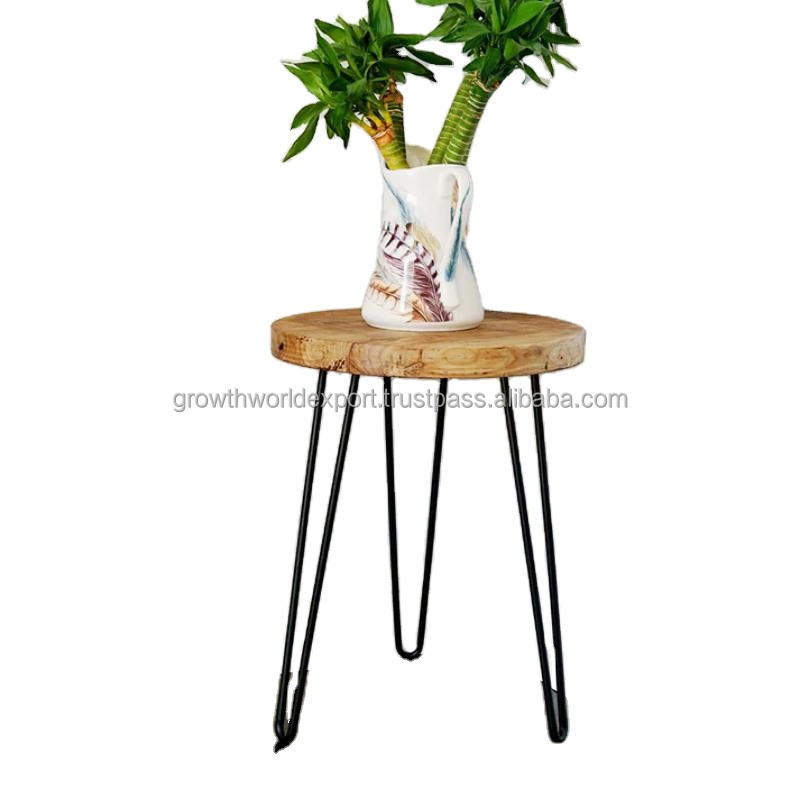 โต๊ะข้างโซฟาไม้เนื้อแข็งทรงกลมทันสมัยพร้อมขาเหล็กทรงกิ๊บ โต๊ะเล็กสำหรับวางข้างโซฟาในห้องนั่งเล่น