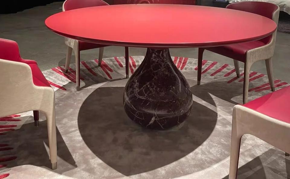 โต๊ะรับประทานอาหารแบบพับได้ลายหินอ่อนทำจากสแตนเลสทรงกลมทันสมัยสำหรับใช้ในบ้าน