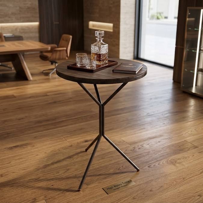 โต๊ะกาแฟหินทรงกลมทันสมัยพร้อมฐานขาตั้งโลหะสีดำเรียบหรูสำหรับห้องนั่งเล่นหรือพื้นที่อพาร์ตเมนต์