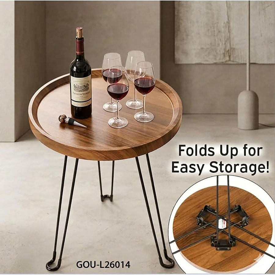 โต๊ะกาแฟไม้ทรงกลมทันสมัยพร้อมขาโลหะพับได้ เฟอร์นิเจอร์ตกแต่งบ้าน