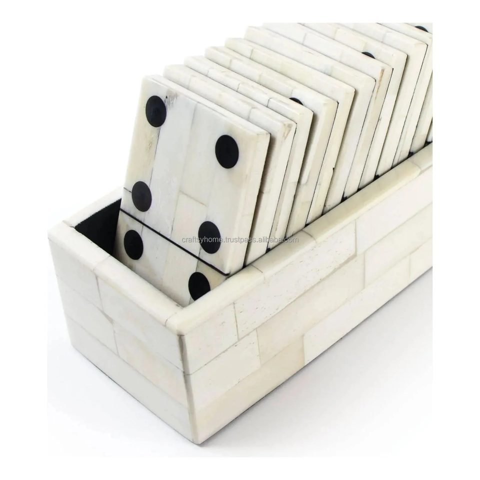 ชุดเกมโดมิโนลายกระดูกรอยัลโบนส์ที่ทันสมัยพร้อมเคสที่สวยงามโครงกระดูกธรรมชาติสีดำผู้เล่นในร่มเกมโดมิโนงานฝีมือสำหรับกระดูก