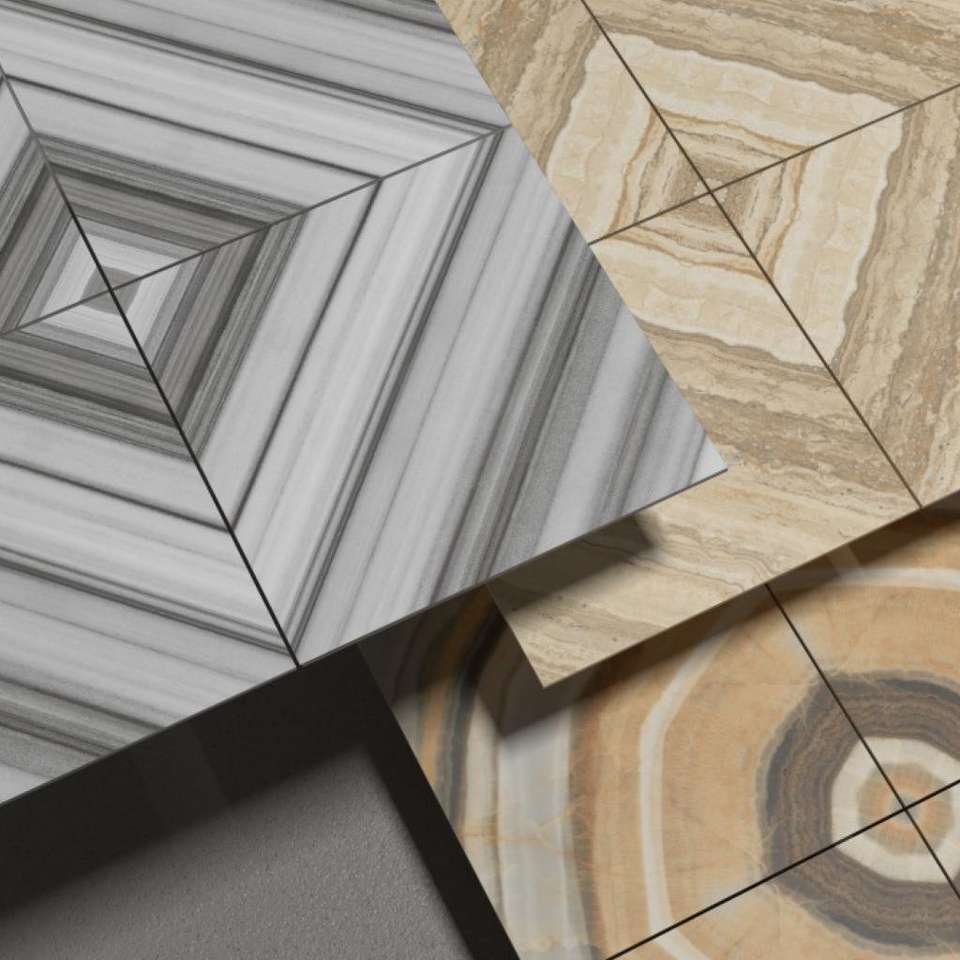 Bookmatch 600x600mm แบบชนบทที่ทันสมัยกระเบื้องเซรามิกปูพื้นในร่มพอร์ซเลนขัดมันต่อเนื่อง600x600mm ผิวด้านเคลือบเงา