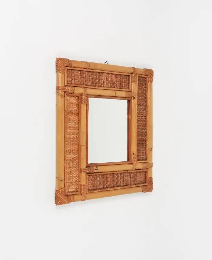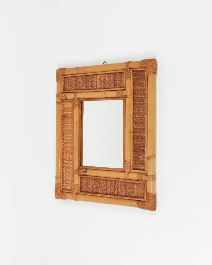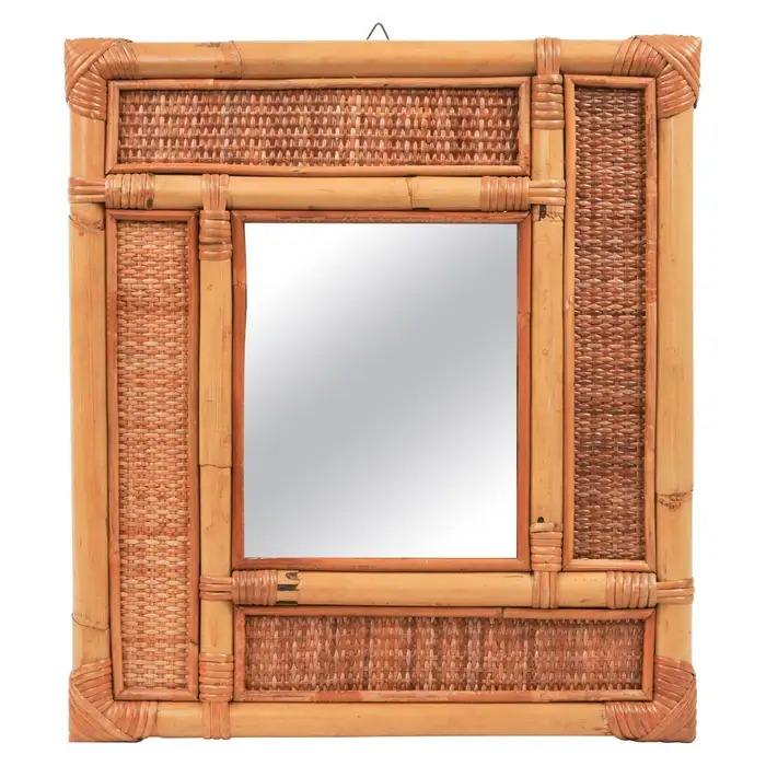 หวายตกแต่งผนังแบบชนบทกระจกกรอบธรรมชาติทอด้วยมือสำหรับห้องนั่งเล่นห้องน้ำพร้อมของขวัญโลโก้ที่กำหนดเอง