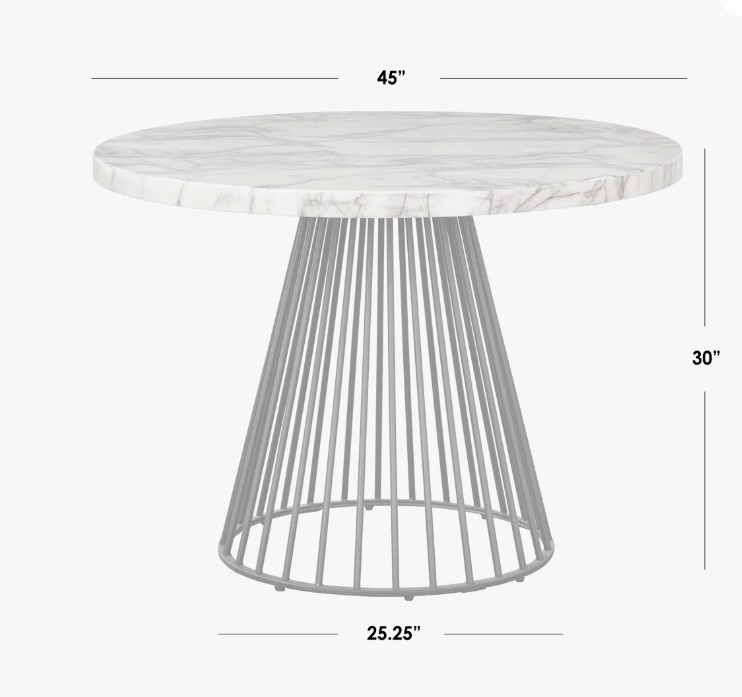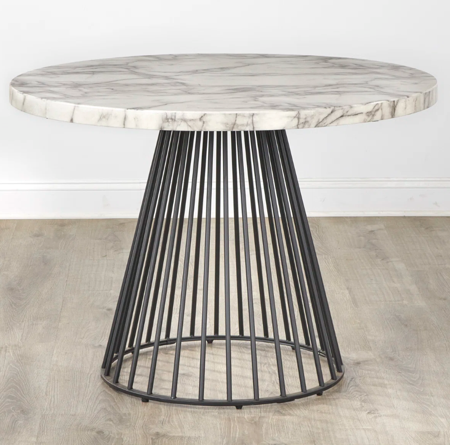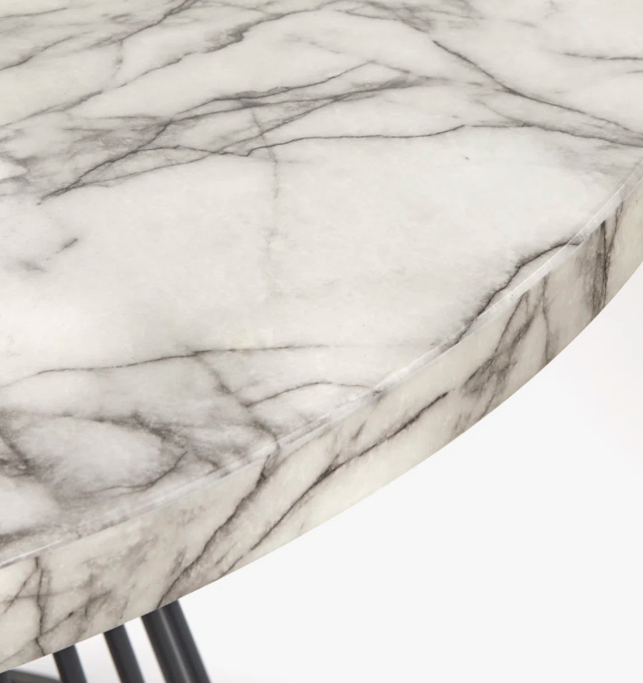 โต๊ะรับประทานอาหารทรงกลองสไตล์โมเดิร์นรัสติก ฐานไม้เนื้อแข็งอะคาเซีย พร้อมท็อปโต๊ะหินอ่อนเคลือบผิวด้วยน้ำ
