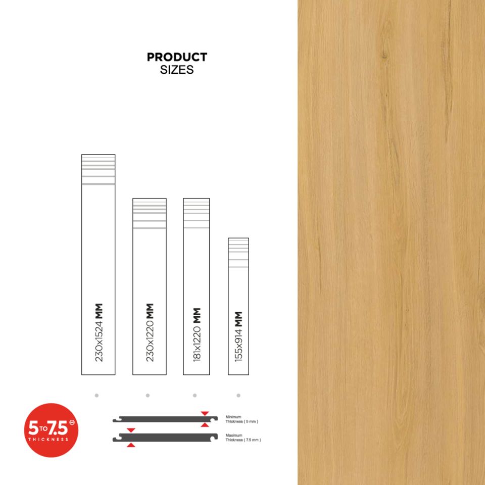 พื้น SPC รุ่นใหม่ ขนาด 230x1220 มม. หนา 5.5 มม. กันน้ำ ติดตั้งแบบลอยตัว รับประกัน 5 ปี แบรนด์ตามสั่ง