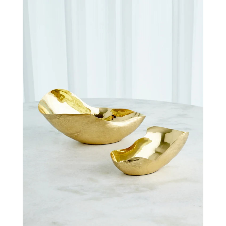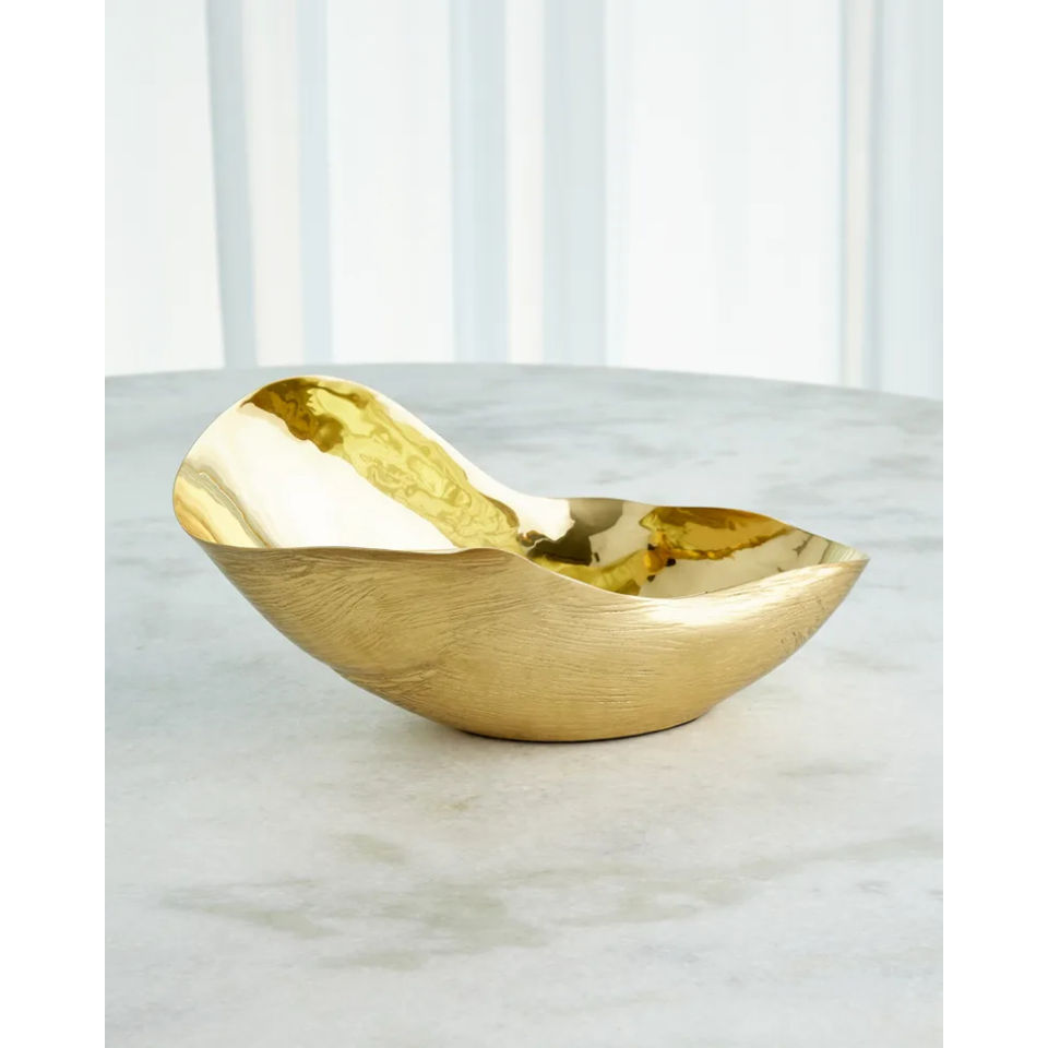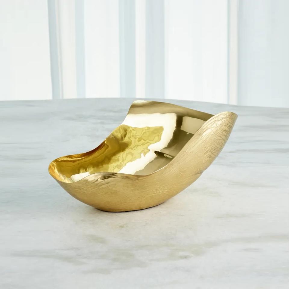 Modern Sculptural Decorative Bowl with Curved Design Royal Polished Gold Accent Centerpiece for Dining Table Coffee Table Decor