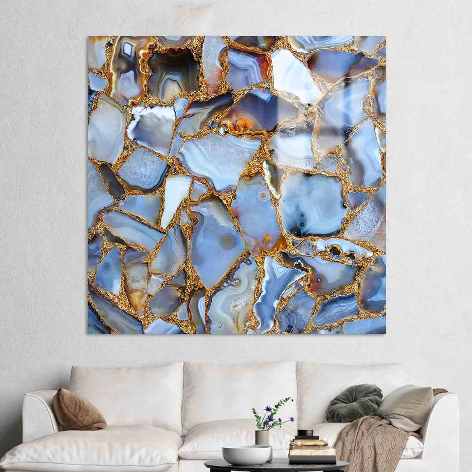การพิมพ์ระยิบระยับที่ทันสมัย: งานศิลปะผ้าใบหินอ่อนสีน้ำเงินและสีทองแก้ว