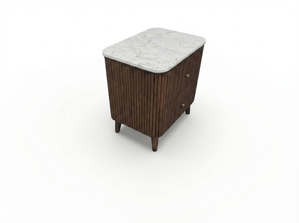 Modern Side/End/Bedside Table with 2 Drawers Acacia MDF Oak veneer Marble Top Dynamic Design for Dining Living Spaces. bed room.