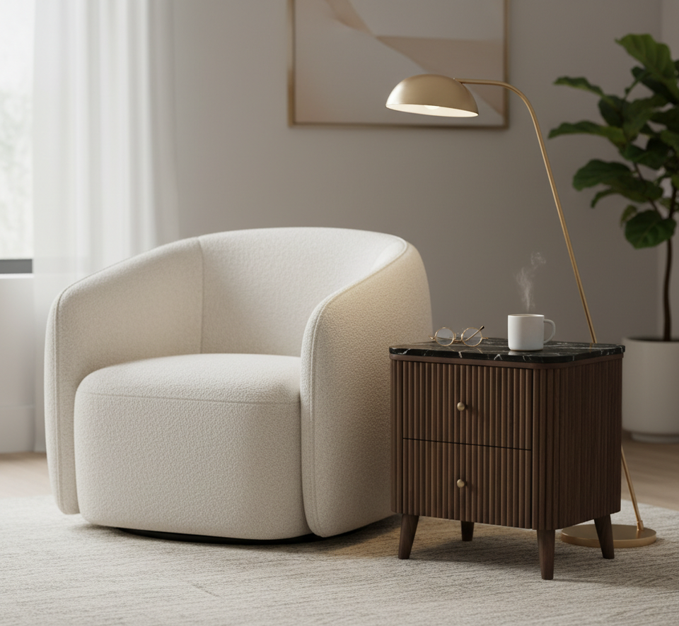 โต๊ะข้างเตียง/โต๊ะข้างโซฟา/โต๊ะอเนกประสงค์ ดีไซน์ทันสมัย พร้อมลิ้นชัก 2 ช่อง ทำจากไม้เอคาเซีย ปิดผิวด้วยวีเนียร์ไม้โอ๊ค ท็อปหินอ่อน ดีไซน์โดดเด่น เหมาะสำหรับห้องรับประทานอาหารและห้องนั่งเล่น ห้องนอน