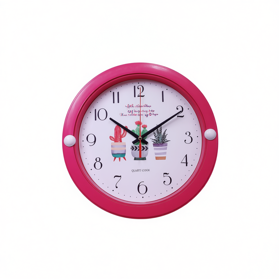 นาฬิกาแขวนผนังอิเล็กทรอนิกส์ รุ่นควอตซ์ หน้าปัดกลม แบบอนาล็อก เงียบ ตกแต่งบ้าน ลายกระบองเพชร รุ่น CL090