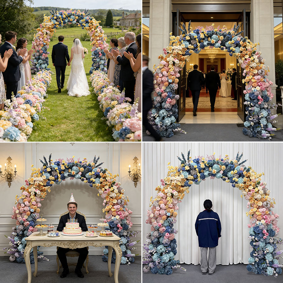 ซุ้มดอกไม้ประดิษฐ์ทำด้วยมือทำจากผ้าไหมที่ทันสมัยสำหรับตกแต่งงานแต่งงานแบบเรียบง่าย