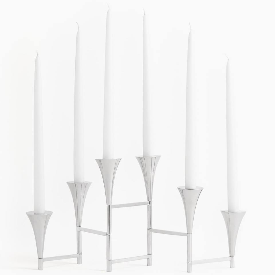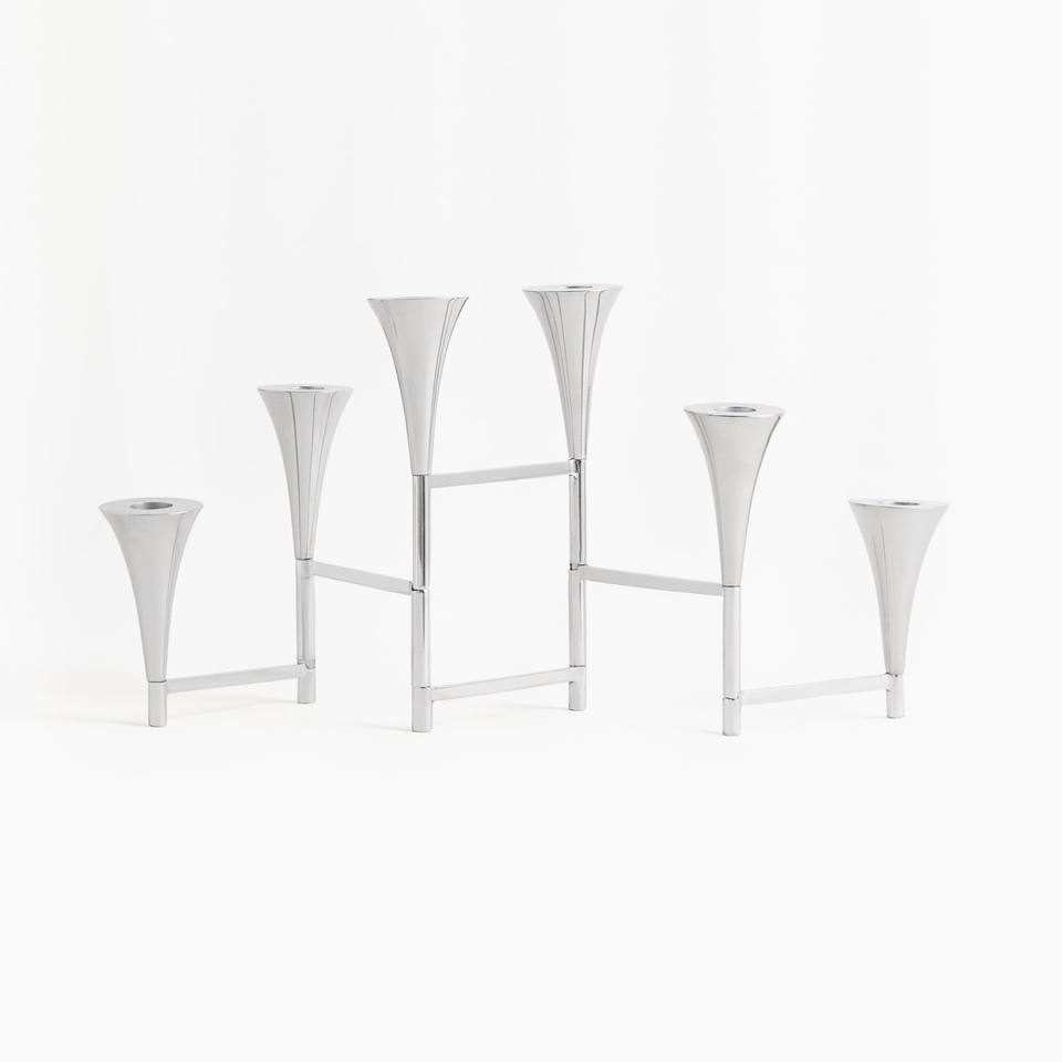 Modern Silver 6-Arm Taper Candle Holder Luxury Chrome Metal Candelabra Nordic Minimalist Handmade Eco-Friendly Wedding Event