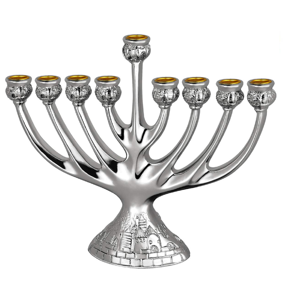 สีเงินแบบโมเดิร์น9ชิ้นสีทองทางศาสนาประกอบแบบคลาสสิก menorah Hanukkah ชาวยิว9แขน