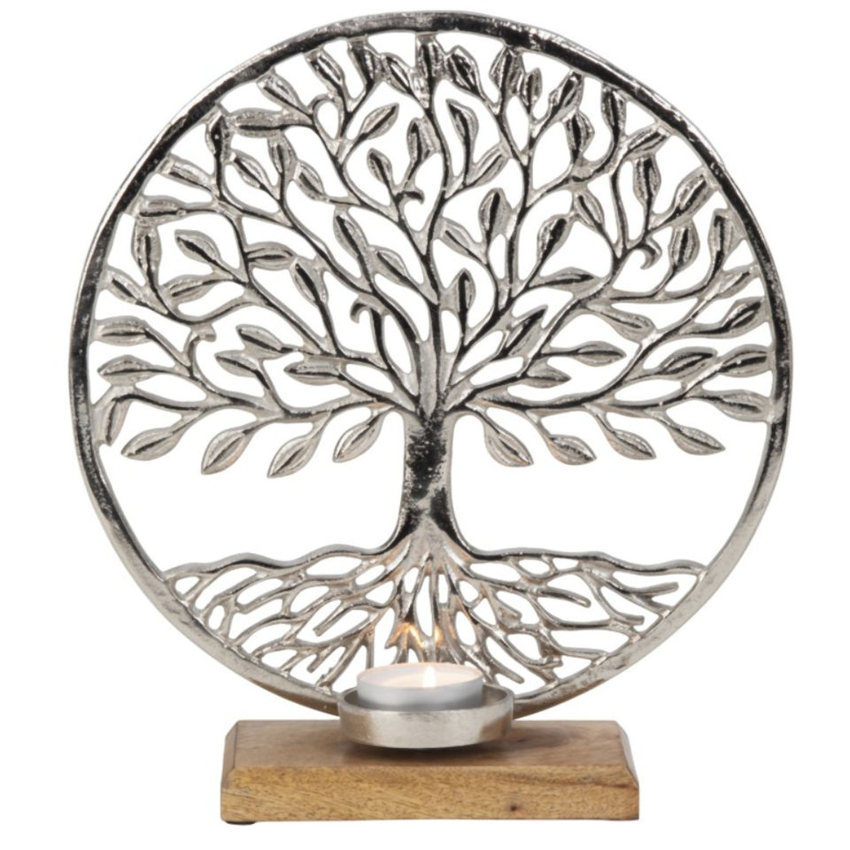 เชิงเทียนอลูมิเนียมสีเงินแบบทันสมัยพร้อมฐานไม้มะม่วงสำหรับตกแต่งบ้านและของขวัญ