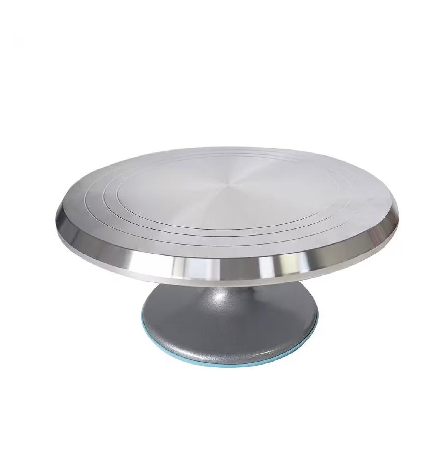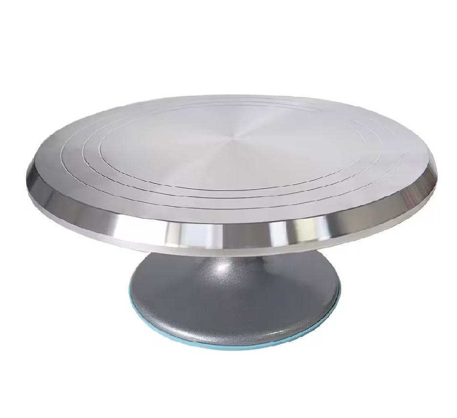 แท่นวางเค้กอลูมิเนียมสีเงินแบบทันสมัยทำขึ้นอย่างแม่นยำด้วยการออกแบบอุตสาหกรรมที่ทันสมัยเพื่อการตกแต่งเค้กที่เรียบเนียน