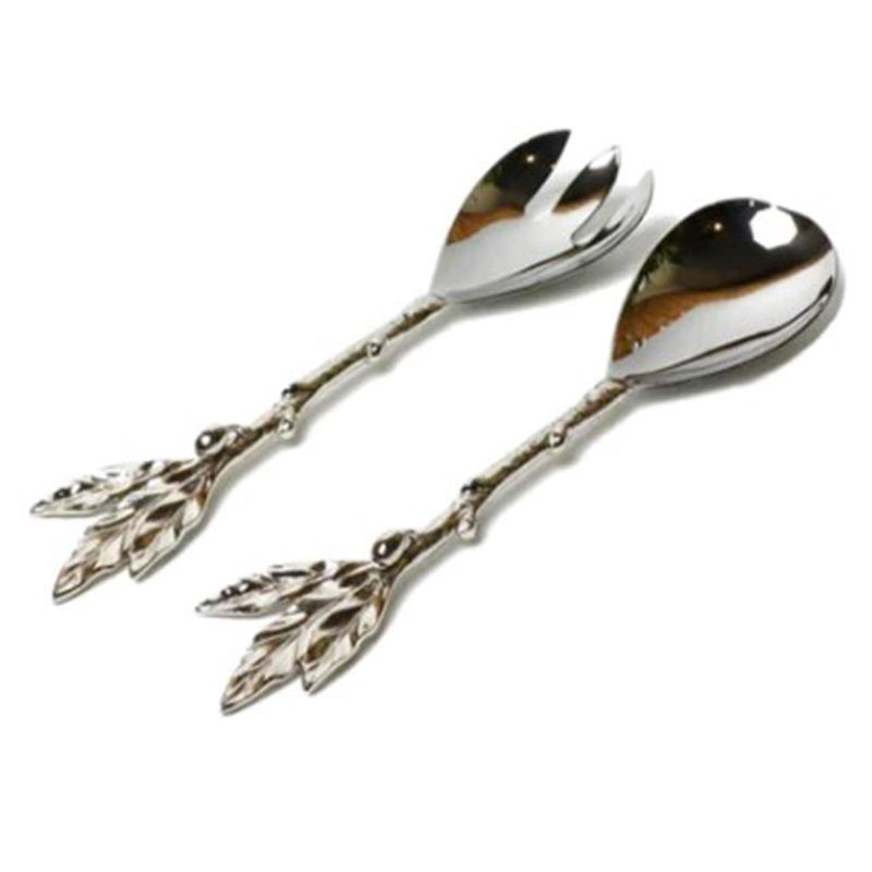 ชุดช้อนส้อมเงินทันสมัยลายใบไม้ สำหรับงานเฉลิมฉลองหรือชุดช้อนส้อมเหล็กขัดเงาสำหรับตกแต่ง