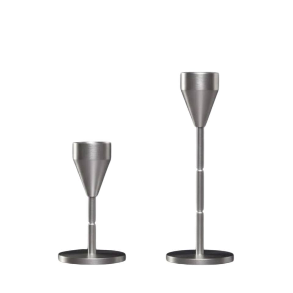 เชิงเทียนโลหะสีเงินทันสมัย ขาตั้งเชิงเทียนสแตนเลสสตีลเคลือบโครเมียม ดีไซน์ฐานรูปทรงกากบาท สำหรับตกแต่งโต๊ะอาหารและบ้าน